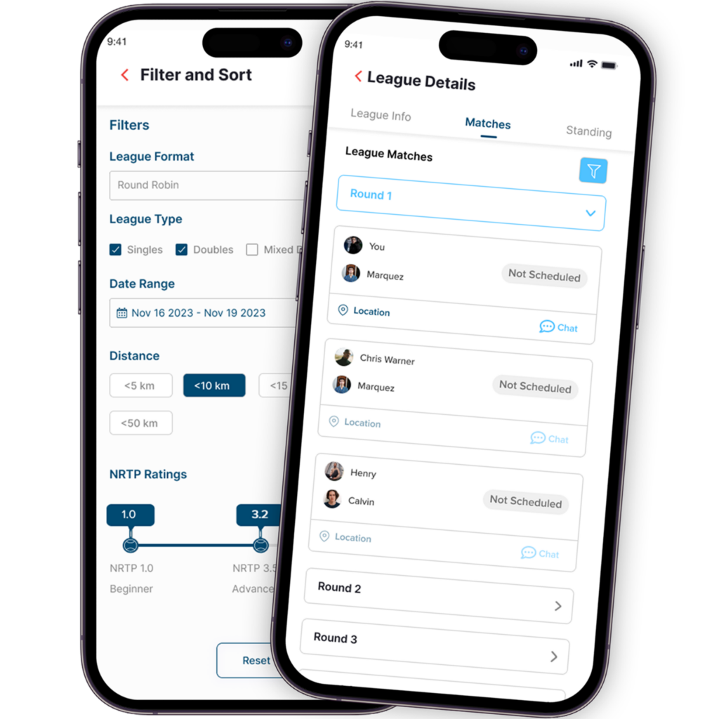 Connects users with fellow sports enthusiasts for competitive matches or casual rally sessions.