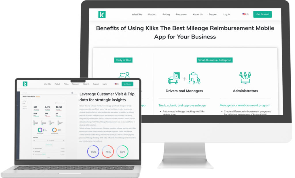 Delivered an iOS, Android, and Web applications with Unmatched Customer Satisfaction for Kliks - Track and process mileage reimbursements easily